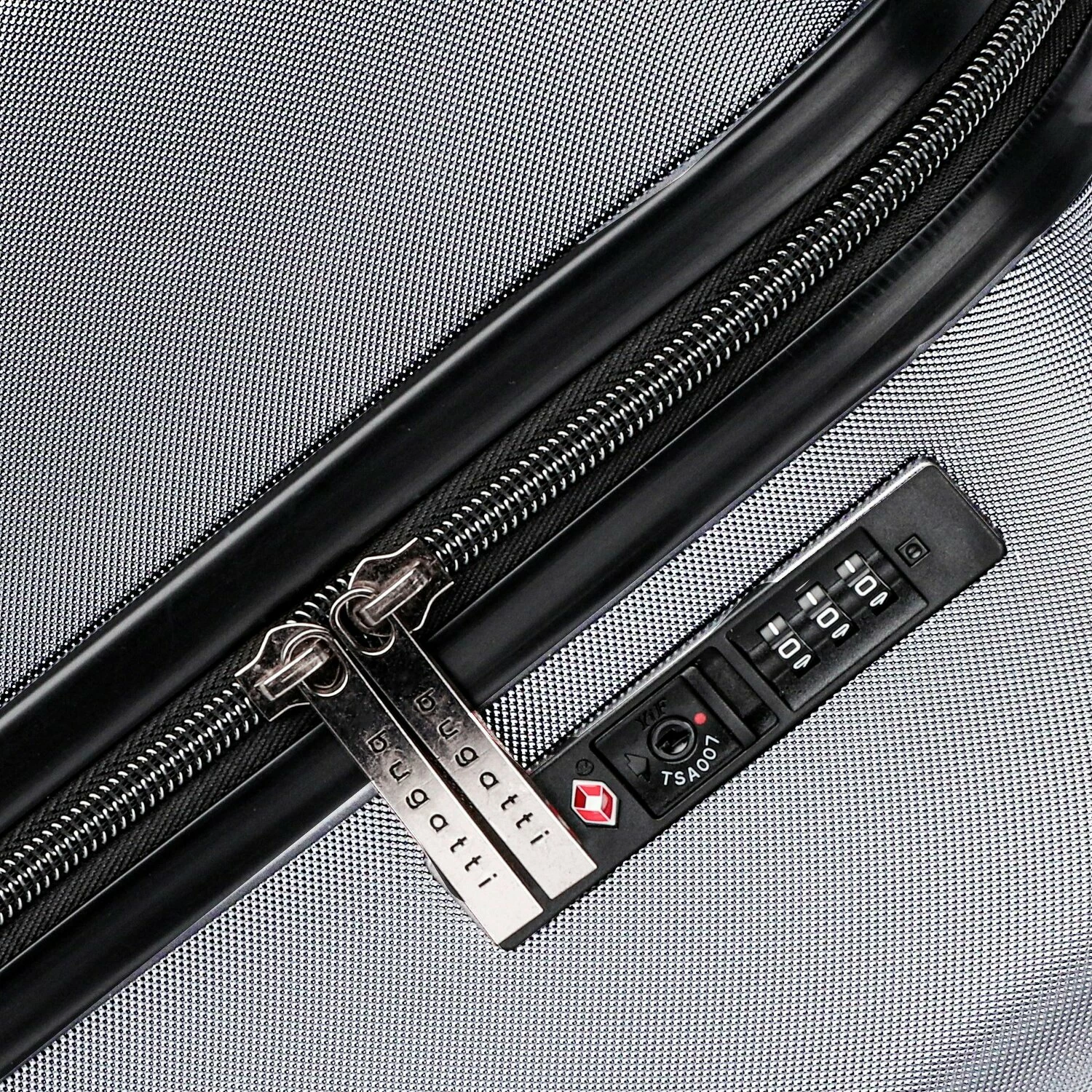 La elegancia se une a la funcionalidad: trolley de alta calidad de Bugatti fabricado en ABS resistente con un diseño moderno y de formas bonitas. El trolley con cuatro ruedas robustas, asa telescópica y cerradura de combinación TSA ofrece un espacioso compartimento principal con cinturón de tensión cruzada y compartimento con cremallera, así como un gran bolsillo de malla.