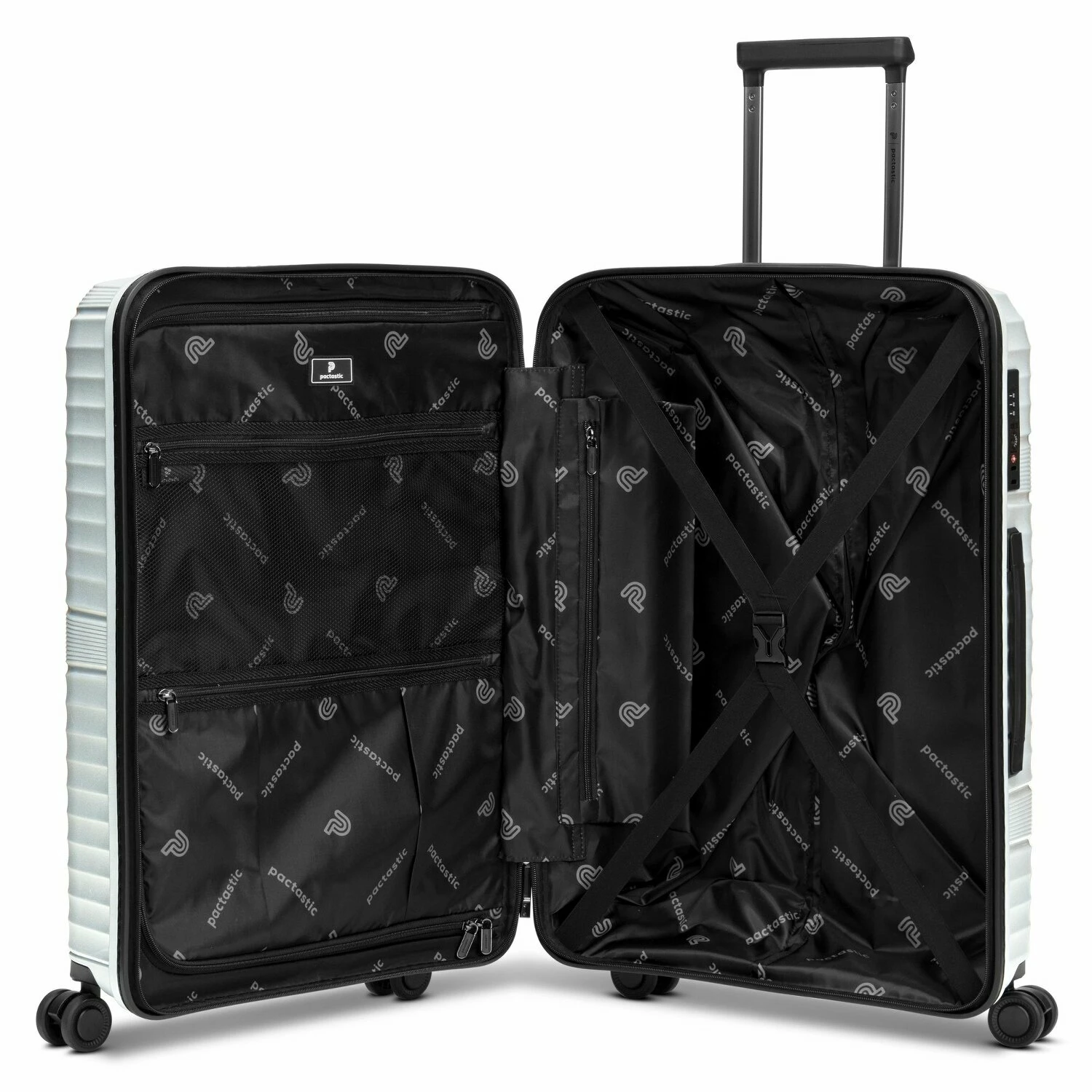 Elegante trolley de Pactastic equipado con 4 ruedas de marcha suave y asa bloqueable, así como asa de transporte en la parte superior y lateral. En su interior, el trolley ofrece mucho espacio de almacenamiento. Gracias al compartimento para la ropa sucia y a la correa cruzada, todo permanece en su sitio cuando se desplaza. Tu nuevo compañero para tu próximo viaje.