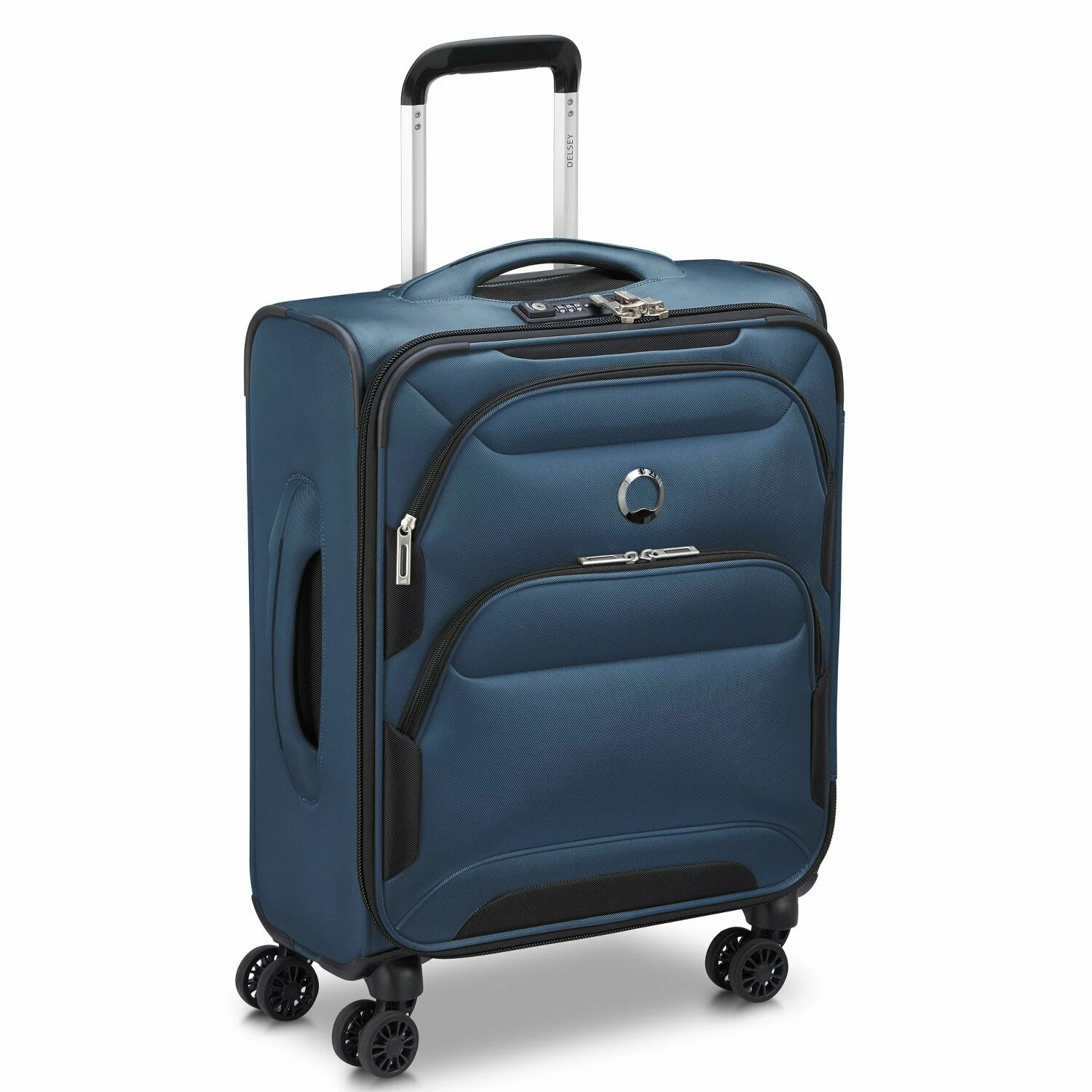 Cómoda trolley de cabina de Delsey fabricada en poliéster resistente. La maleta ofrece suficiente espacio para todo lo que necesitas en un viaje, incluyendo compartimentos con cremallera, y tiene una cerradura TSA integrada para mayor seguridad. Un asa bloqueable con 4 ruedas y un asa de transporte proporcionan opciones de movilidad.