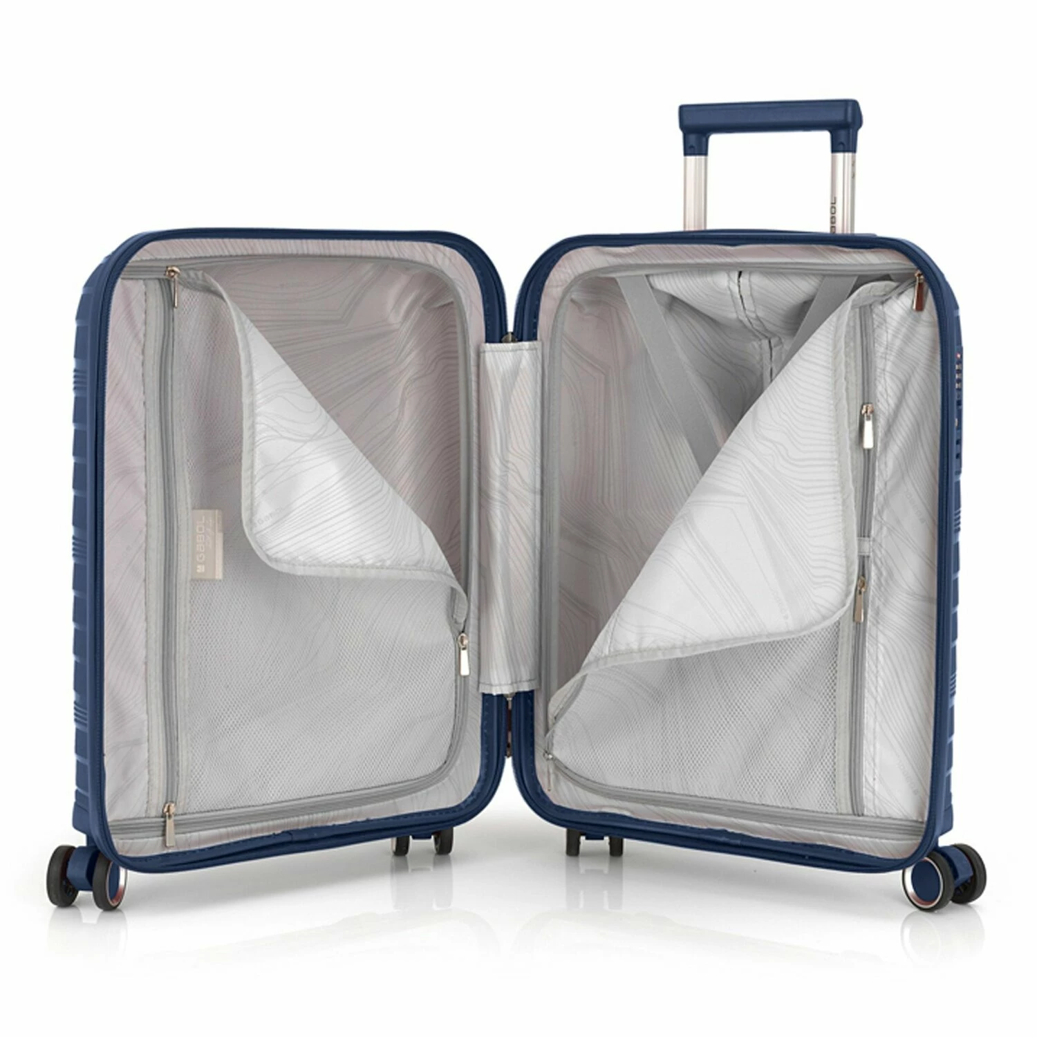 Trolley de cabina rígido de Gabol con un diseño estilizado y elegante fabricado en polipropileno extremadamente robusto. El trolley impresiona por su estabilidad y su interior bien pensado. Con el espacioso compartimento principal con compartimentos que se pueden empaquetar por separado y la correa de empaquetado cruzada, el orden y la visión de conjunto están garantizados. El compañero ideal para su próximo viaje.