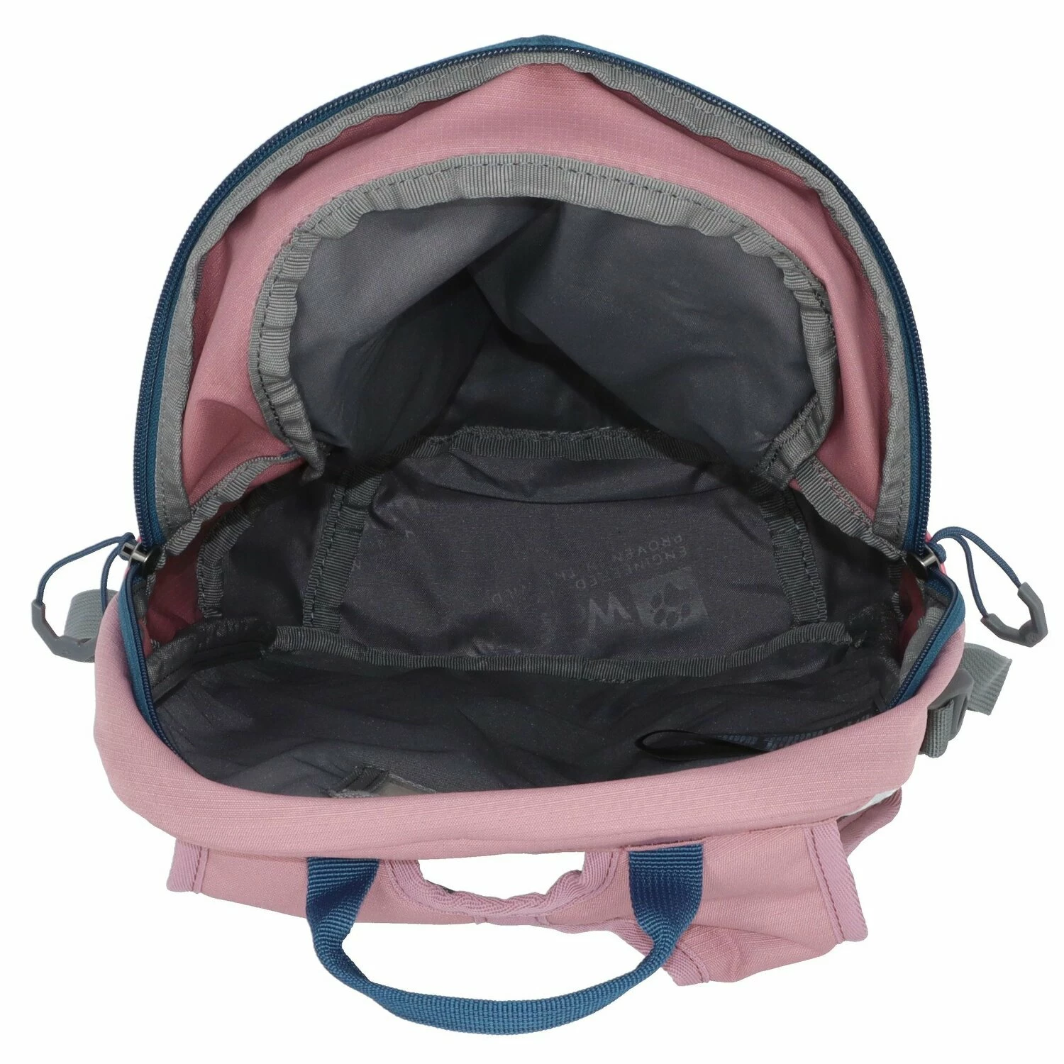 Espaciosa mochila infantil de Jack Wolfskin con etiqueta de dirección en el interior y cómoda espalda acolchada. Además del compartimento principal, con espacio suficiente para aperitivos, una muda y otros utensilios, hay 2 bolsillos exteriores de malla para botellas o paraguas y elementos reflectantes para mayor seguridad. Un compañero ideal para los más pequeños en sus primeras excursiones y paseos por la montaña.