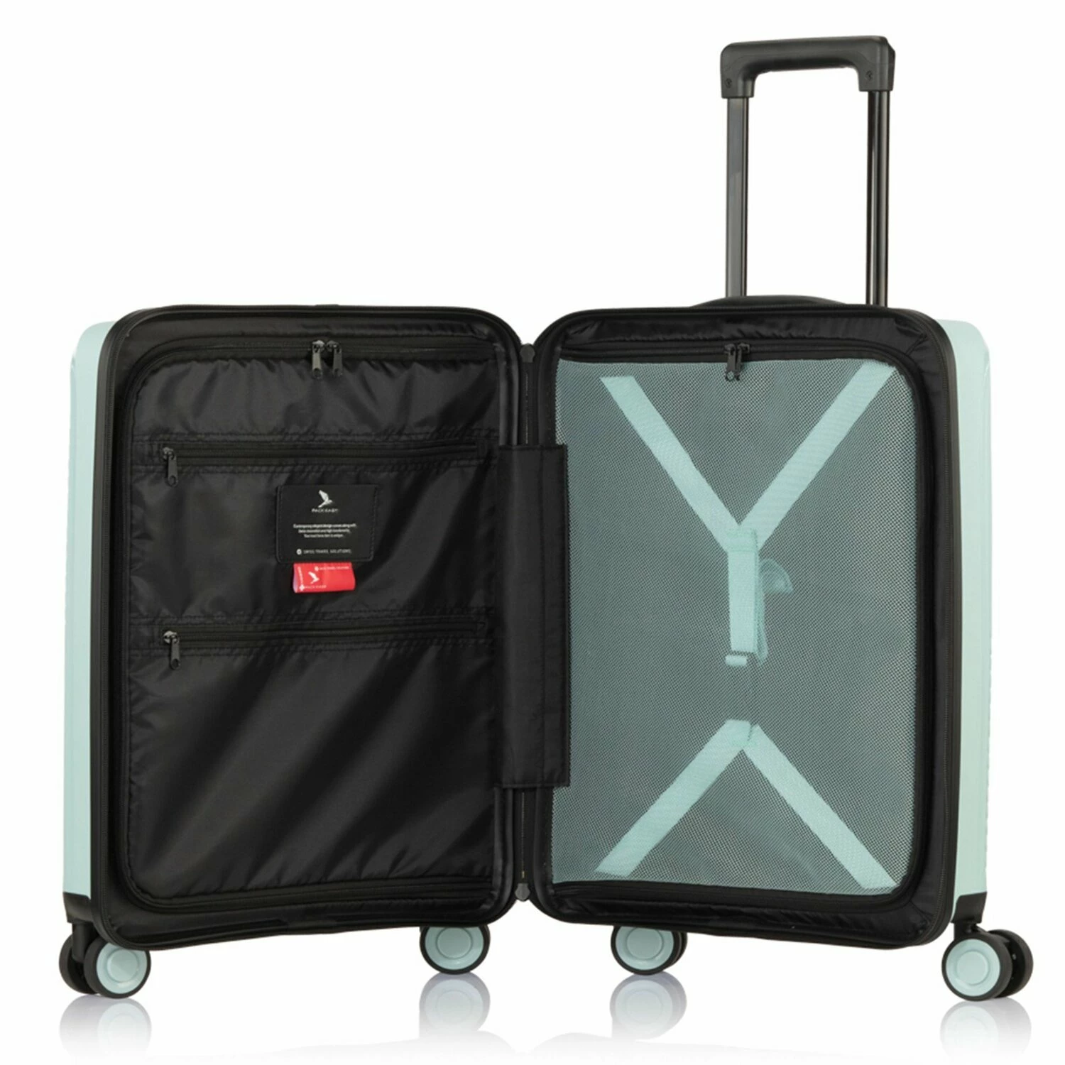 Elegante y práctico carro de cabina de 4 ruedas. El espacioso compartimento principal ofrece espacio para todo tipo de equipaje y está bien organizado con una correa cruzada y varios compartimentos con cremallera. El carro también dispone de un compartimento para la colada para separar mejor la ropa sucia de la limpia. Además, está equipado con una cerradura TSA integrada para mayor seguridad.