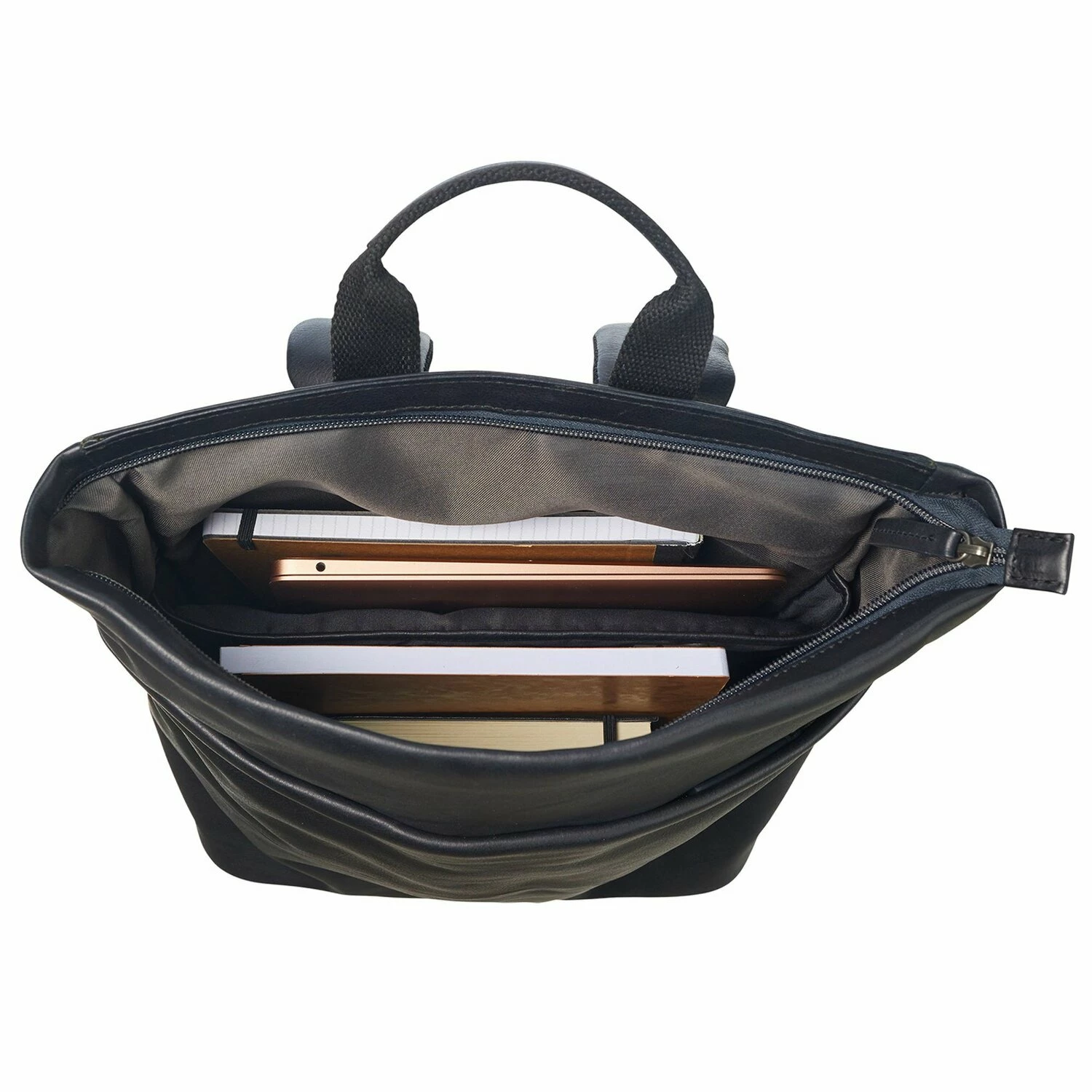 La funcionalidad se une al diseño: la mochila de negocios de alta calidad de Leonhard Heyden, fabricada en robusta piel de vacuno, no sólo impresiona por su diseño sencillo e intemporal y su fino material, sino que también ofrece mucho espacio y una óptima visión de conjunto con su amplio compartimento principal, un compartimento acolchado para el portátil y otros compartimentos para objetos de valor, el teléfono móvil, bolígrafos y mucho más. La sección de la espalda reforzada con acolchado garantiza un transporte cómodo para todas las actividades.