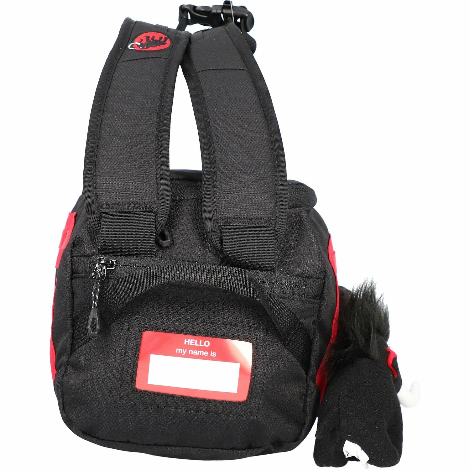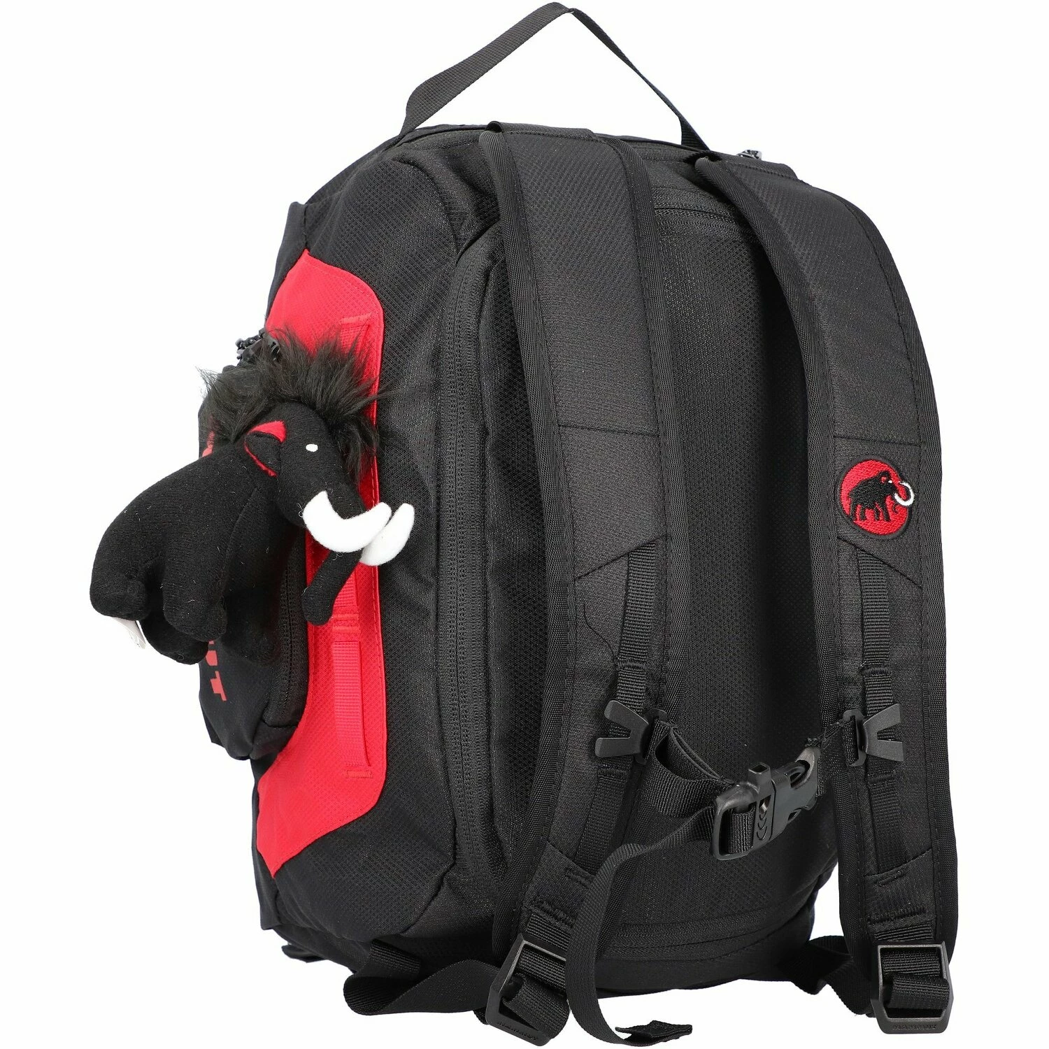 Correas para los hombros que se pueden plegar para formar un asa Incluye un peluche de mamut Correa para el pecho con silbato integrado Etiqueta con nombre y dirección Bolsillo principal voluminoso Soporte para cadena Daisy Amplias asas a ambos lados Bolsillo interior de malla con cremallera 2 bolsillos exteriores con cremallera para objetos de valor