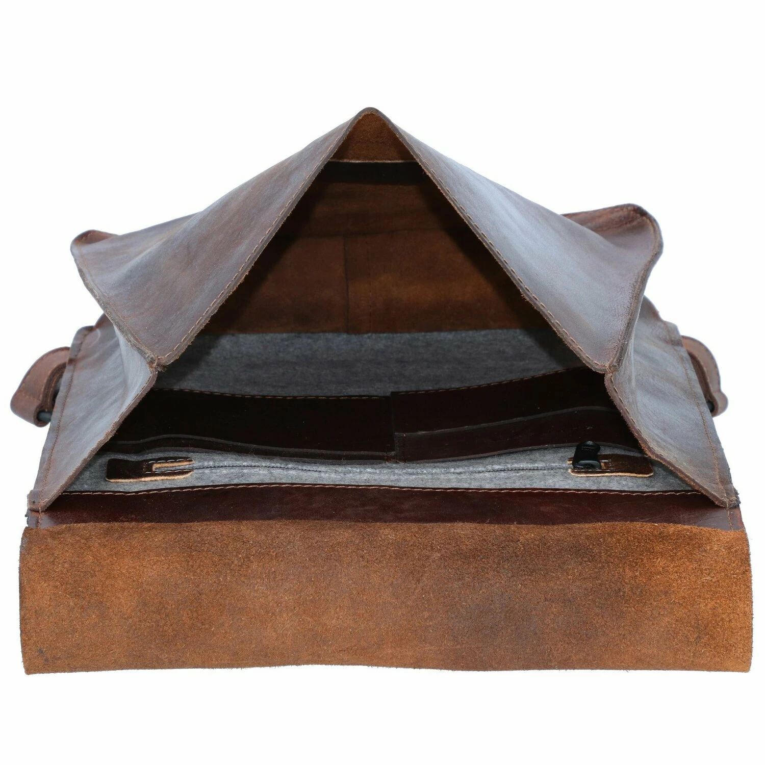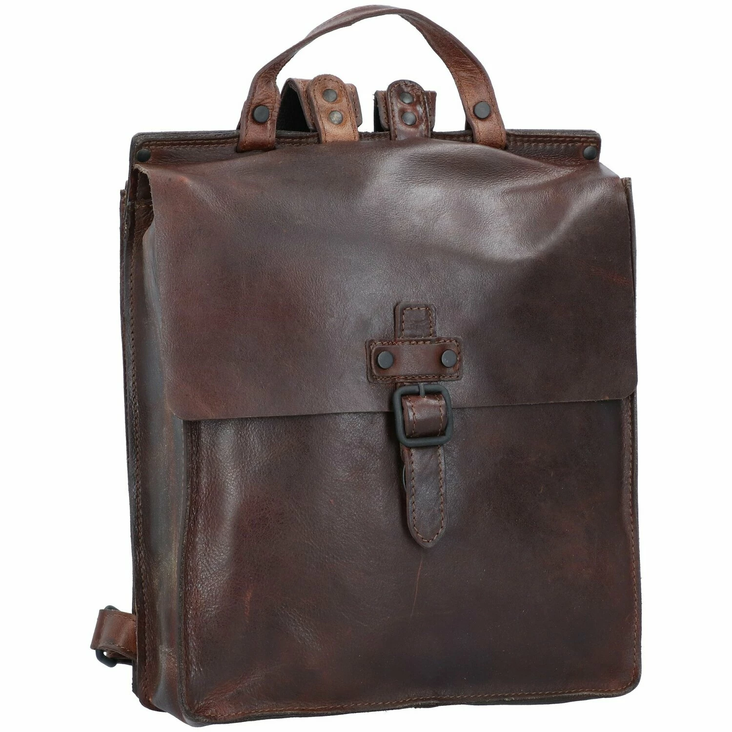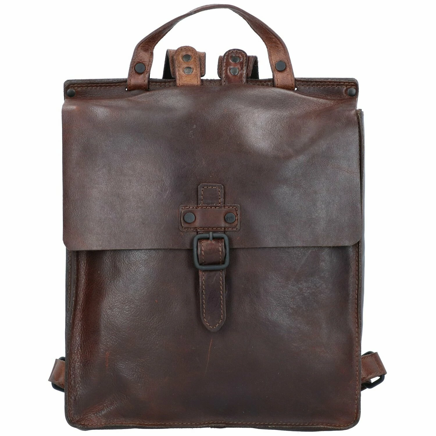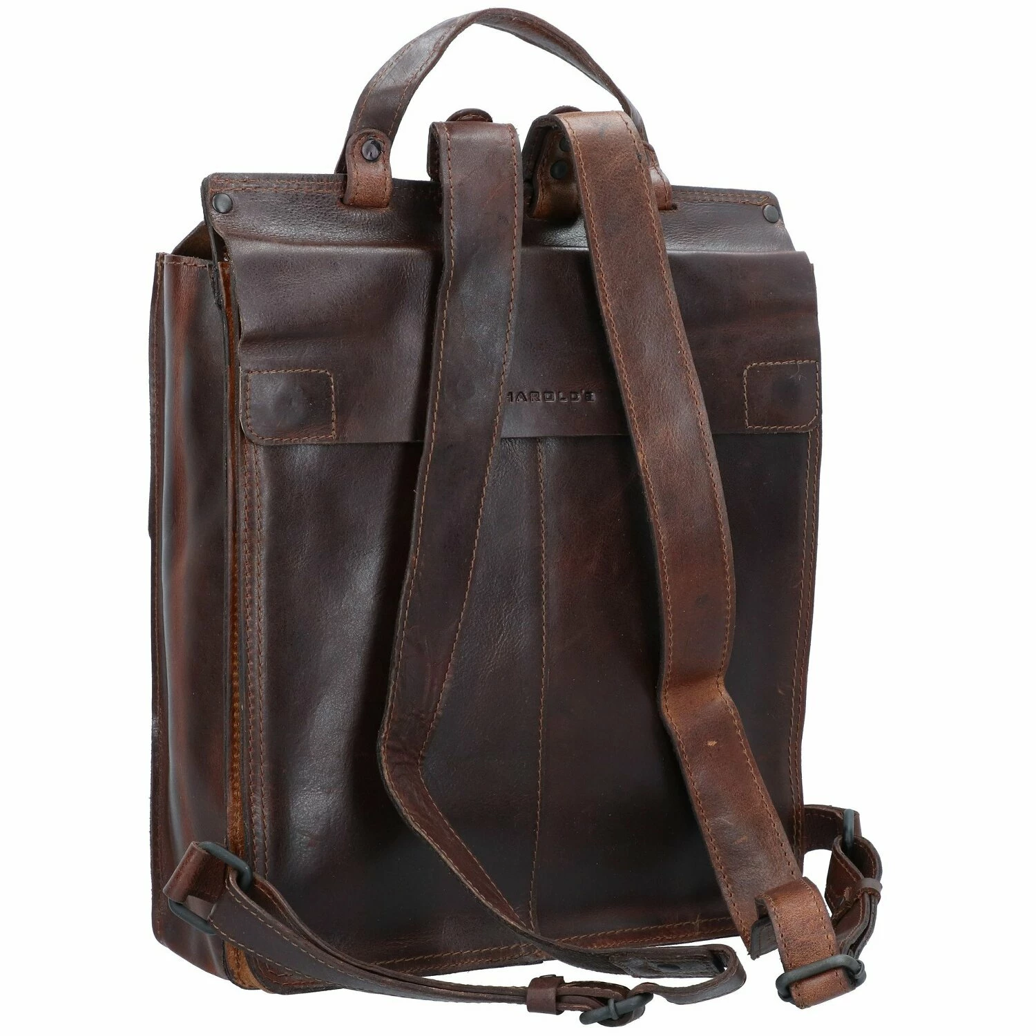 Elegante mochila de cuero vacuno encerado de la serie Aberdeen de Harold con compartimento para portátil. El compartimento principal está equipado con un bolsillo con cremallera y varios bolsillos abiertos y ofrece espacio suficiente para documentos A4.