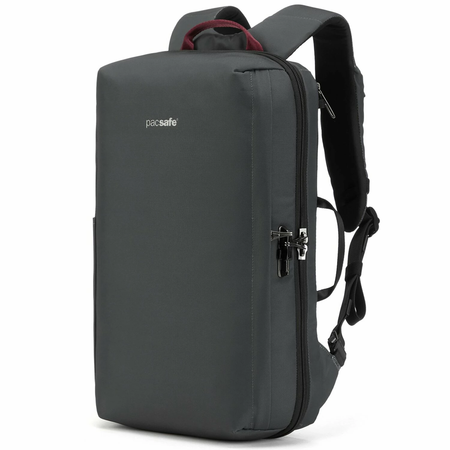 Mochila funcional de Pacsafe fabricada en robusto poliéster. La mochila tiene un compartimento principal con compartimento acolchado para el portátil y la tableta, organizador y bolsillos externos, así como bolsillos para bolígrafos y bolsillos deslizantes en el interior que garantizan una buena organización. Ideal para la oficina o para los desplazamientos. El sistema de cierre TSA en la cremallera exterior permite que tus pertenencias estén siempre bien protegidas.