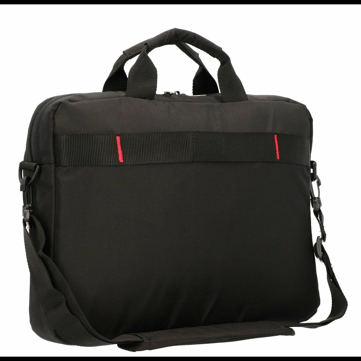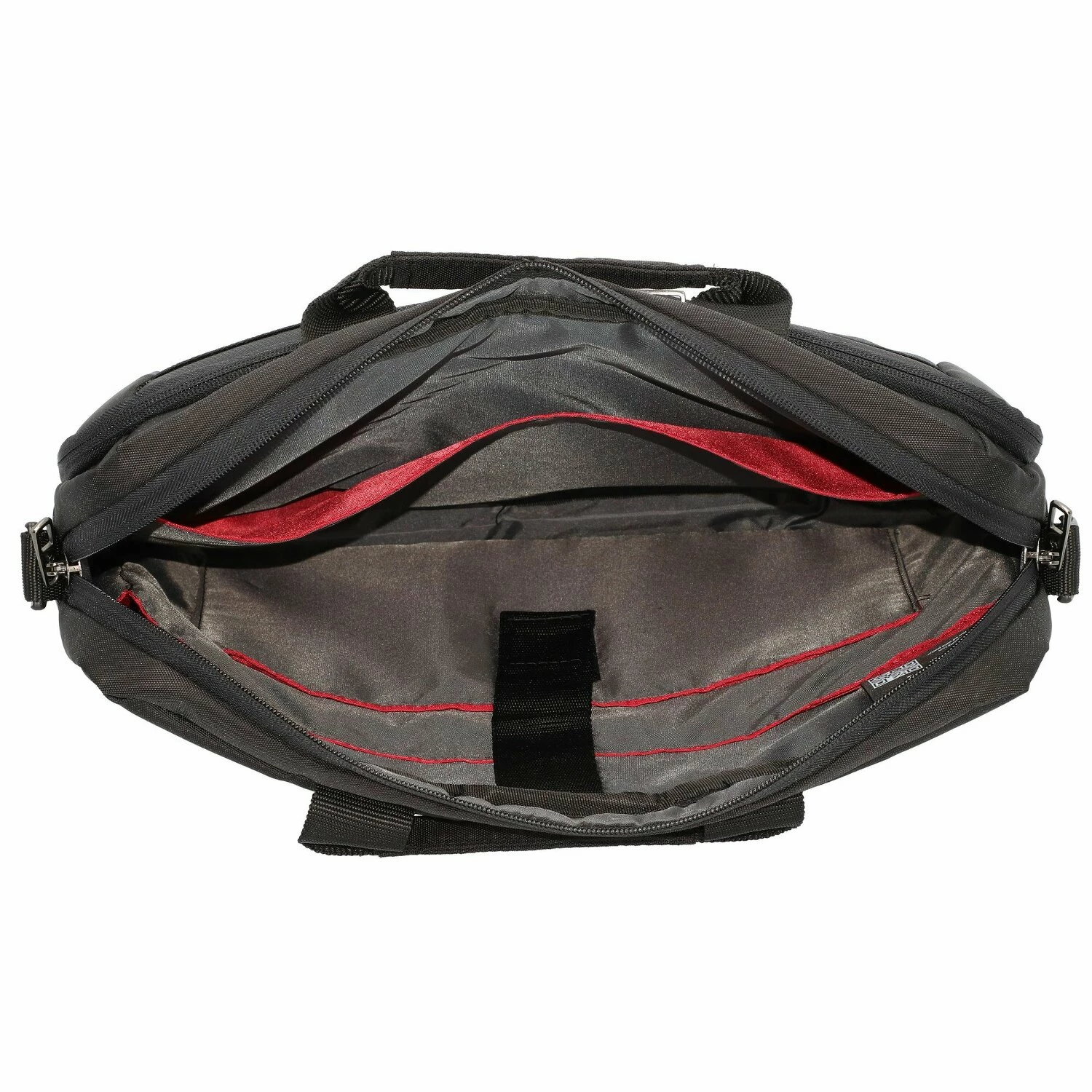 Bolsa de vuelo Samsonite de material resistente con compartimentos para documentos A4 y correa de hombro ajustable. El compartimento principal tiene espacio para un portátil, una tableta y una pequeña carpeta.