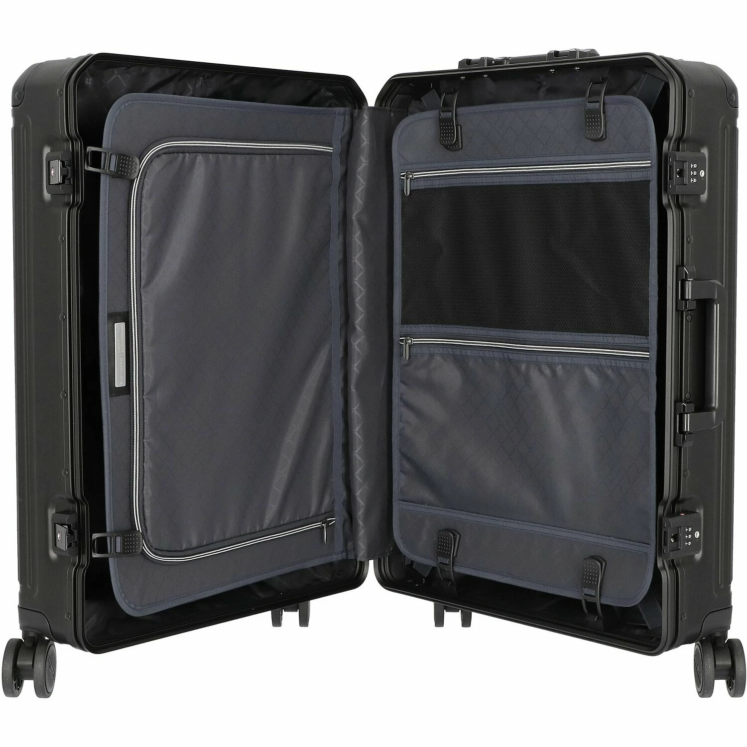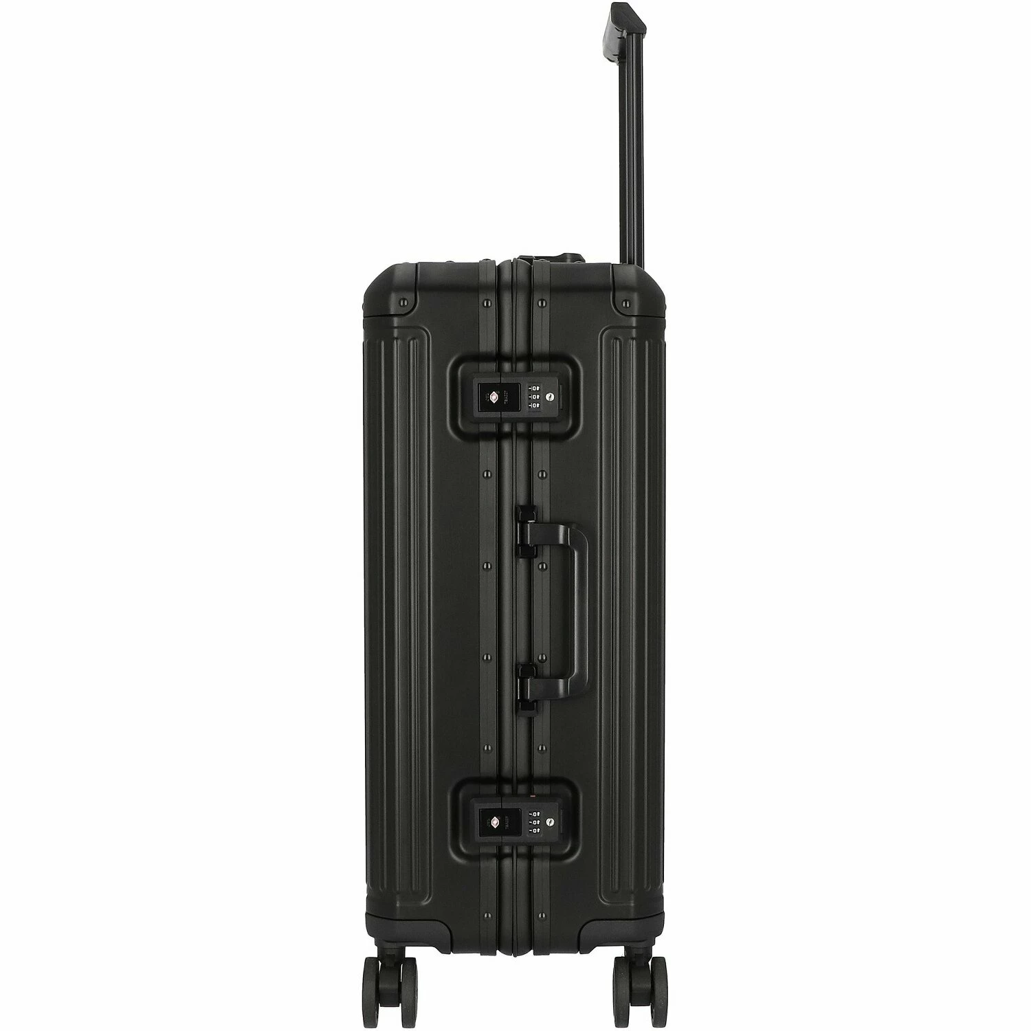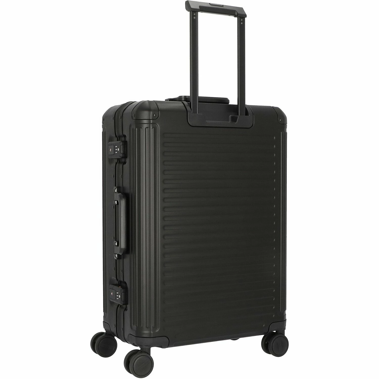 Este carro de aluminio robusto es elegante, estable y de gran calidad. Impresiona por su concepto de diseño clásico e intemporal con ranuras horizontales. Con una cerradura TSA para mayor seguridad, cuatro silenciosas ruedas dobles que pueden moverse en todas direcciones y compartimentos interiores bien pensados, el trolley es un compañero funcional y chic para cada viaje.