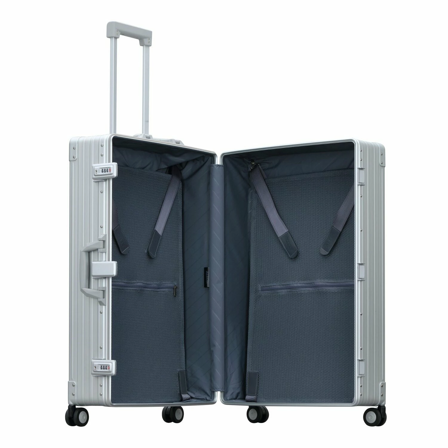 Elegancia atemporal y máxima calidad se combinan en este carrito fabricado en aluminio de alta calidad. Con su interior bien pensado y de diseño inteligente, la maleta ofrece una buena visión de conjunto. Dos cerraduras TSA para mayor seguridad y cuatro silenciosas ruedas dobles que pueden moverse en todas direcciones completan el diseño. El compañero cómodo para sus vacaciones.
