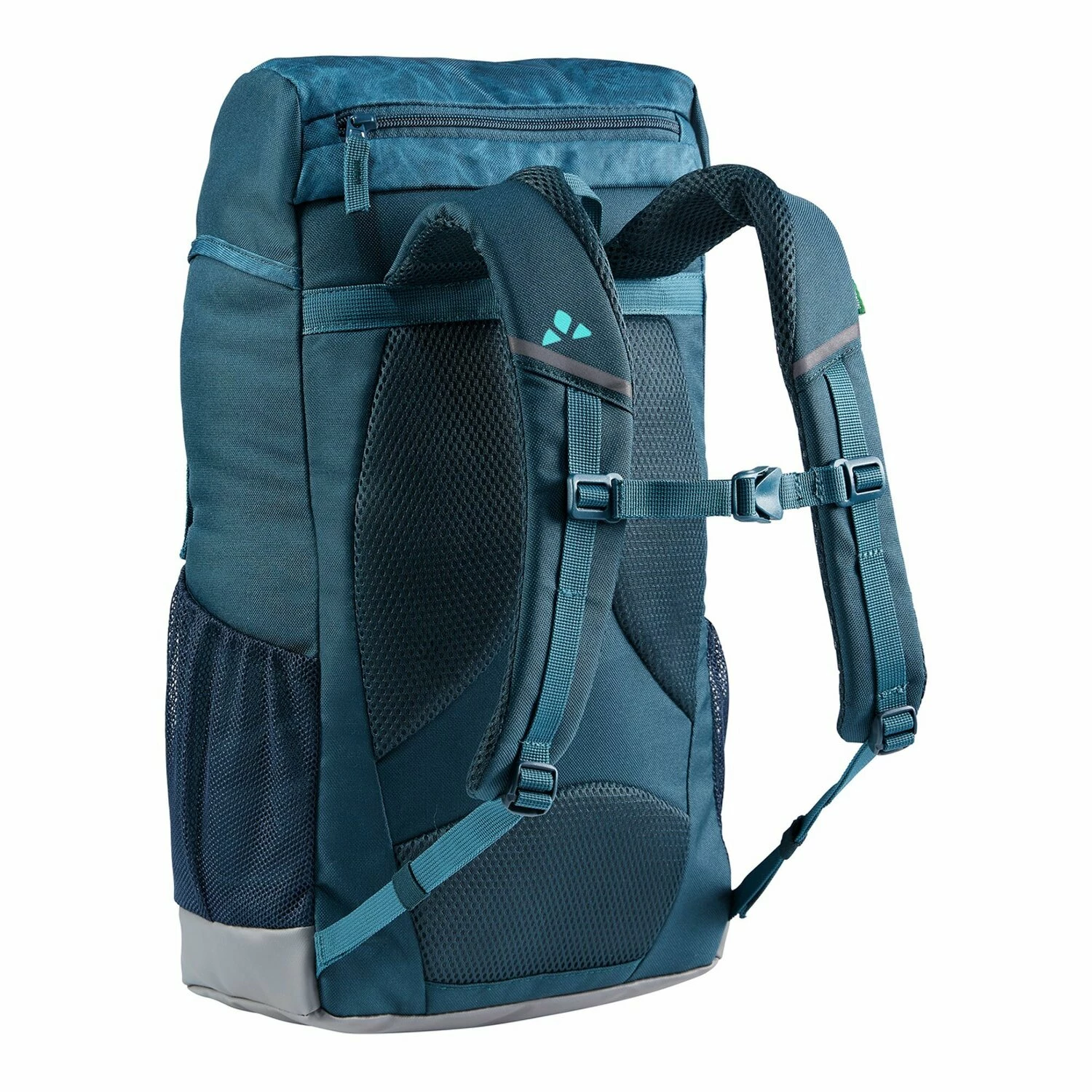 Mochila Vaude para niños con protector de lluvia y alfombrilla de asiento extraíble. El respaldo acolchado, la alfombrilla del asiento y varios compartimentos de malla y con cremallera aportan comodidad y un espacio de almacenamiento óptimo. El material impermeable del fondo y la funda para la lluvia protegen la mochila incluso con mal tiempo. Una supermochila para los más pequeños para muchas ocasiones.