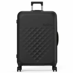 Moderno y elegante carrito de 4 ruedas de Rollink que responde al espíritu de los tiempos. Gracias a la tecnología de plegado, el trolley se puede plegar unos pocos centímetros y, por lo tanto, se puede guardar ahorrando espacio. La robusta carcasa, repelente al agua, está fabricada en policarbonato alemán. En el interior hay varios compartimentos con cremallera y una correa cruzada para mantener el equipaje en su sitio.