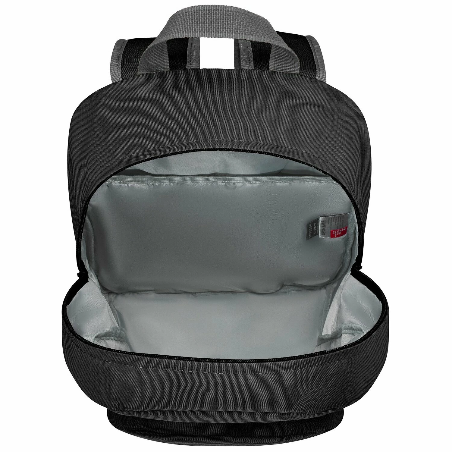 La mochila de negocios de Wenger fabricada en robusto poliéster con compartimento acolchado para el portátil ahorra espacio y ofrece una visión óptima gracias a sus numerosos compartimentos para documentos, objetos de valor, teléfono móvil, bolígrafos y mucho más. Un sistema de transporte acolchado hace que sea cómoda de llevar.